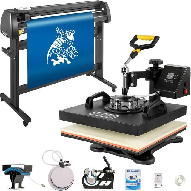 15" x 15" Heat Press & 53" Vinyl Cutter, Good Combined Use, Excellent Cutting Capacity, Outstanding Heat Press Effect, Digital Practical Controller, USB & Serial Ports, Complete Accessories, Specifications, Model: 15" x 15" Heat Press & 53" Vinyl Cutter, Max Paper Feed: 1350MM/53.1", Max Cutter Width:1260MM/49.6", Cutter Pressure: 10-500g, Cutting Speed: 0.4"-31.5"/s / 10-800 mm/s, Repetition Accuracy: 0.0004" / 0.01 mm, Rated Voltage: 110V, Heating plate size: 15" x 15" (38 x 38 cm), Time range: 0-999 S, Temperature range: 200-450 F (95-232 C), Model: 15" x 15" Heat Press & 53" Vinyl Cutter Max Paper Feed: 1350MM/53.1" Max Cutter Width:1260MM/49.6" Cutter Pressure: 10-500g Cutting Speed: 0.4"-31.5"/s / 10-800 mm/s Repetition Accuracy: 0.0004" / 0.01 mm Rated Voltage: 110V Heating plate size: 15" x 15" (38 x 38 cm) Time range: 0-999 S Temperature range: 200-450 F (95-232 C), Package Content, 1 x 53 Inch Vinyl Cutter Plotter Machine, 1 x SIGNMASTER Software, 1 x Blades Holder, 3 x Blades, 1 x Pen Holder, 3 x Cables (USB/Serial/Power Cord), 1 x Fully-Assembled Machine With Platen Press, 1 x Hat Press, 1 x Mug Presses, 2 x Plate Presses, 1 x 53 Inch Vinyl Cutter Plotter Machine 1 x SIGNMASTER Software 1 x Blades Holder 3 x Blades 1 x Pen Holder 3 x Cables (USB/Serial/Power Cord) 1 x Fully-Assembled Machine With Platen Press 1 x Hat Press 1 x Mug Presses 2 x Plate Presses,