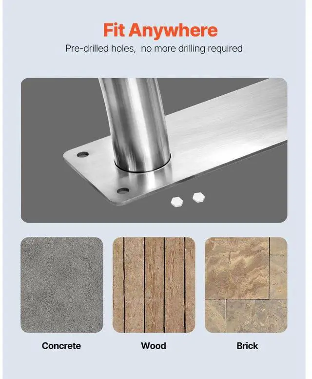 Vevor Swimming Pool Handrail Ladder Handrail Stainless Steel Rail W/ Base Plate