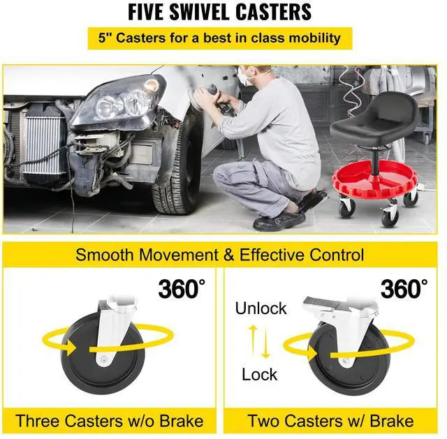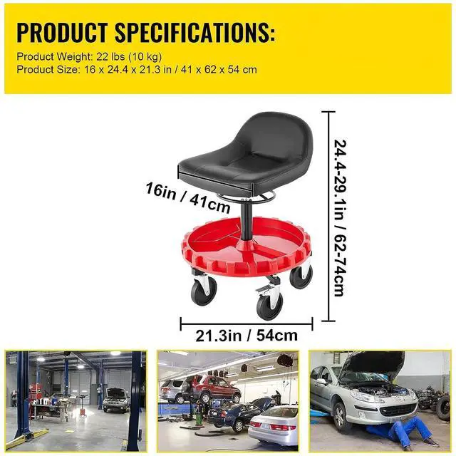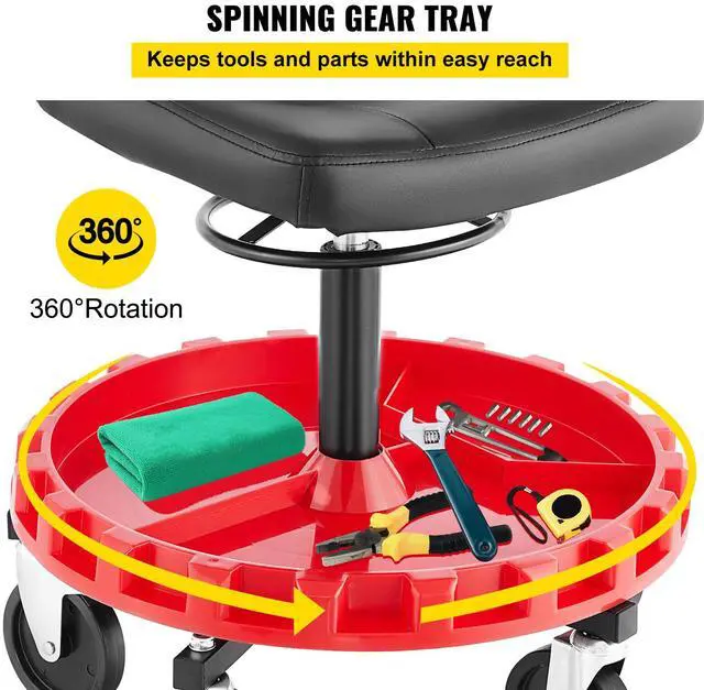 • VEVOR Shop Stool, 300 LBS Rolling Garage Stool, 22 to 26 Adjustable Height Mobile Rolling Gear Seat, Round Tray Garage Pneumatic Stool, All-Terrain 5" Casters with Two Brakes Mechanic Seat