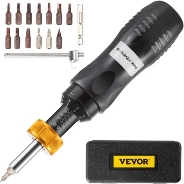 VEVOR Torque Screwdriver, 1/4" Drive Screwdriver Torque Wrench, Torque Screwdriver Electrician 10-70 in/lbs Torque Range Accurate to 5%, Adjustable inch Pound Torque Screwdriver with Bits & Case