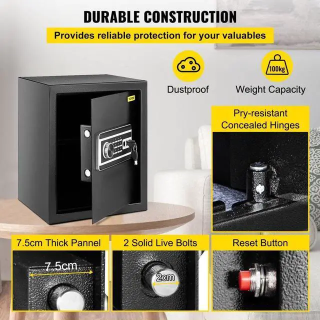 VEVOR Safe Box, 1.7 CU.FT Fingerprint Safe Box for Money w/ 2 Keys & Digital Keypad, Q235 Steel Safe Box for Storing Cash, Jewelry, Pistols, Documents, Watches in Home & Office & Hotel