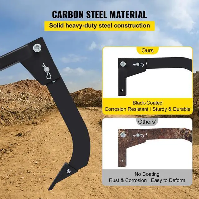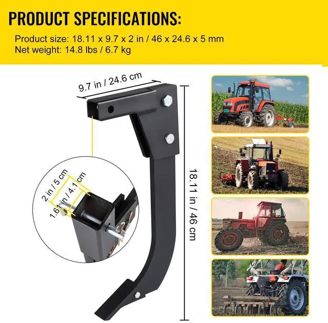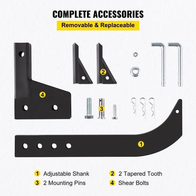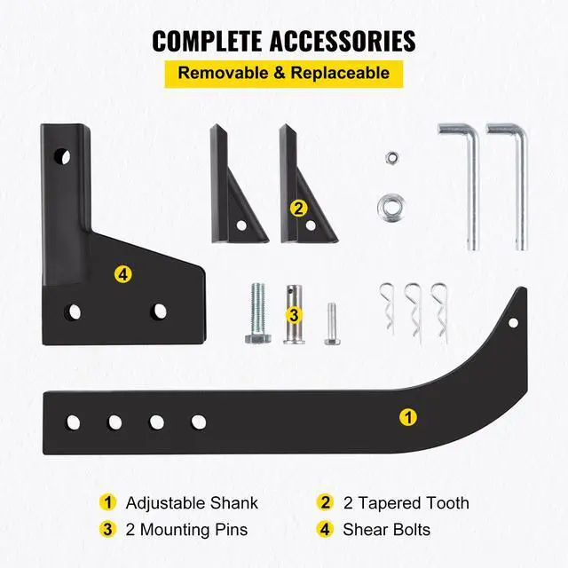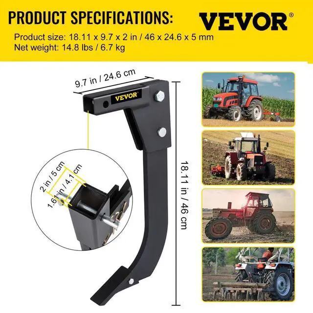 • VEVOR Hitch Mounted Ripper, 18" Shank Length Box Scraper Shank, 4 HoleSite Box Blade for Tractor, 2 Locating Pins Ripper Shank, 2 Plough Tips Box Blade Shank Teeth