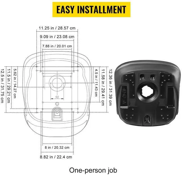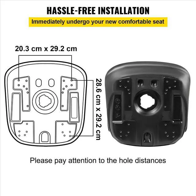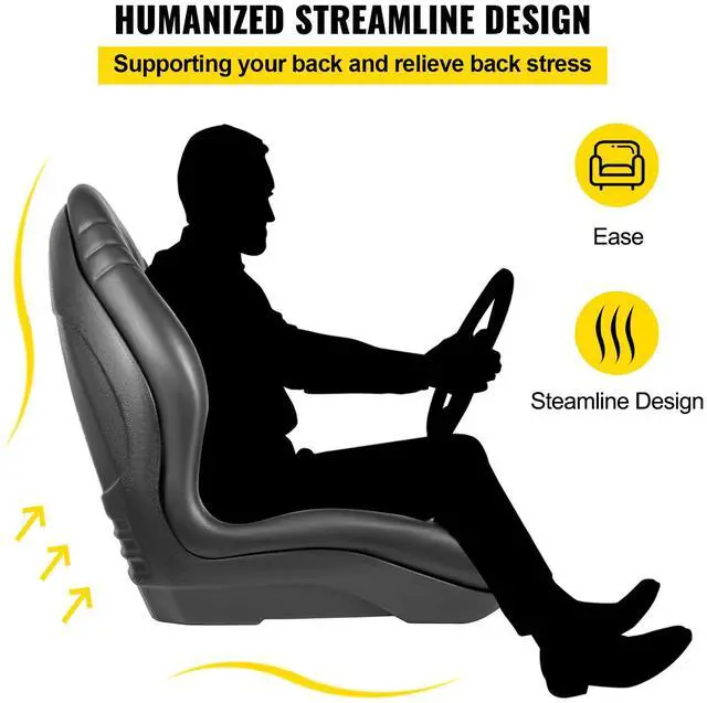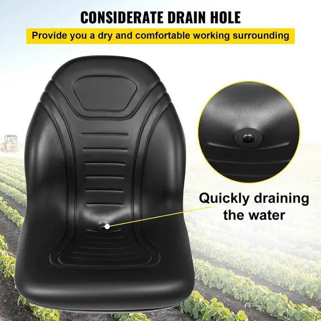 VEVOR Universal Lawn Tractor Seat Replacement, Compact High Back Mower Seat, Black Vinyl Forklift Seat, Central Drain Hole Skid Steer Seat with Mounting Bolt Patterns of 8" x 11.5" & 11.25" x 11.5"