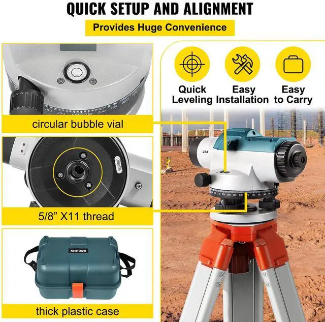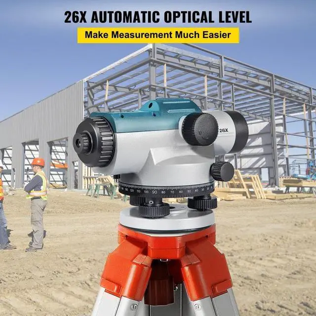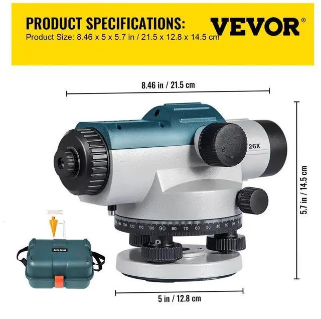 VEVOR Automatic Optical Level 26X Optical Auto Level Kit High Precision Height/Distance/Angle Level Measure Builders Level with Magnetic Dampened Compensator and Transport Lock, IP54 Waterproof