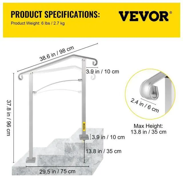 Steps: 2 or 3,Weight Capacity: 264.5 lbs/120 kg,Model: SS-YJH-00018,Max Height for Steps: 13.8"/35 cm,Product Weight: 6 lbs/2. 7 kg,Material: Alloy,Post Height: 37.8"/96 cm,Distance Between Posts: 29.5"/75 cm