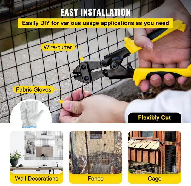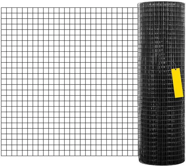 VEVOR Hardware Cloth, 24" x 100' & 1"x1" Mesh Size, Galvanized Steel Vinyl Coated 16 Gauge Chicken Wire Fencing w/A Cutting Plier & A Pair of Fabric Gloves, for Garden Fencing & Pet Enclosures, Black