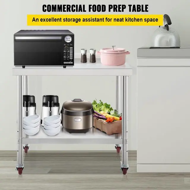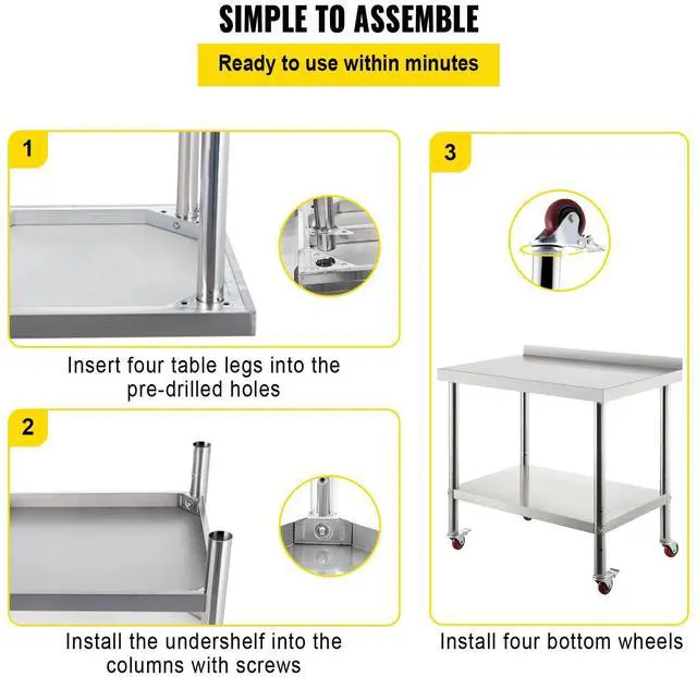 Under Shelf Load Capacity: 110 lbs / 50 kg,Undershelf Size: 33.3 x 21.3 inch / 84.5 x 54 cm,Item Dimension: 36 x 24 x 35 inch / 91.4 x 61 x 89 cm,Backsplash Height: 2 inch / 5 cm,Model: VV-SSWT-BJL-2436,Material: Stainless Steel,Top Shelf Load Capacity: 330 lbs / 150 kg,Distance Between Two Shelves: 16.9-20.1-23.2 inch / 43-51-59 cm,Item Weight: 37.5 lbs / 17 kg,Table Legs Diameter: 1.9 inch / 48 mm