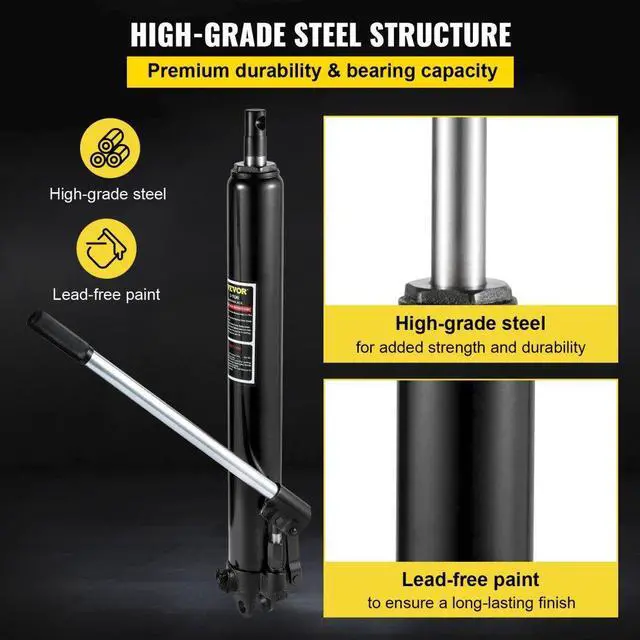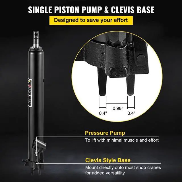 VEVOR Hydraulic Long Ram Jack, 3 Tons/6600 lbs Capacity, with Single Piston Pump and Clevis Base, Manual Cherry Picker w/Handle, for Garage/Shop Cranes, Engine Lift Hoist, Black