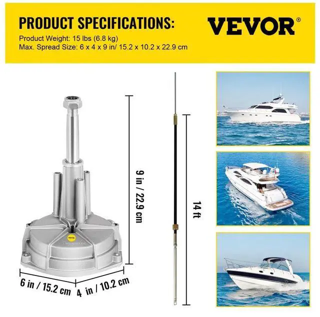 VEVOR Boat Steering Cable 14' Outboard Rotary Steering Kit 14 Feet Boat Rotary Steering Kit for Boats
