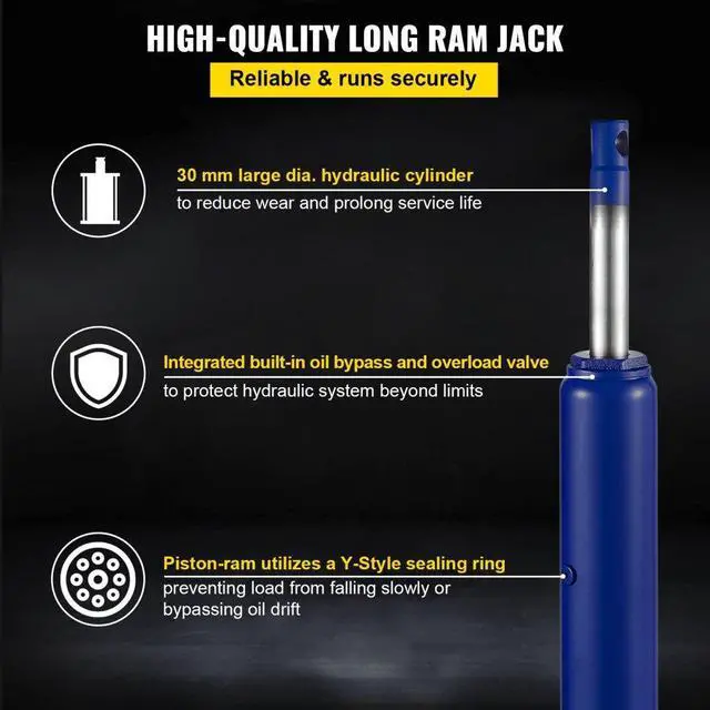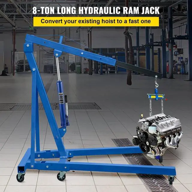 VEVOR Hydraulic Long Ram Jack, 8 Tons/17363 lbs Capacity, with Single Piston Pump and Clevis Base, Manual Cherry Picker w/Handle, for Garage/Shop Cranes, Engine Lift Hoist, Blue