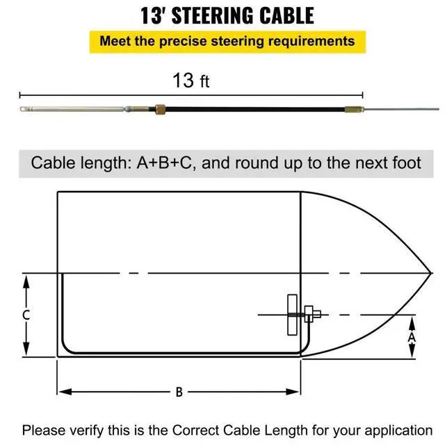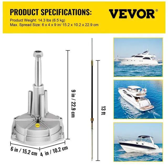 VEVOR Outboard Boat Steering 13' Boat Steering Cable 13 Feet Outboard Steering kit 3/4'' Tapered Shaft for Boat Steering