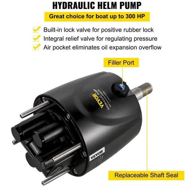 VEVOR Hydraulic Boat Steering Kit, 300HP Hydraulic Steering Kit Helm Pump, Hydraulic Outboard Steeing Kit with 14 Feet Hydraulic Steering Hose for Boat Steering System