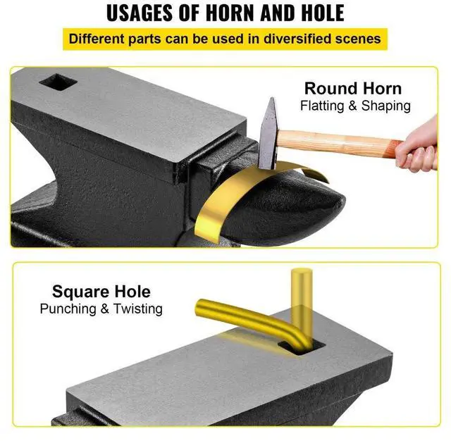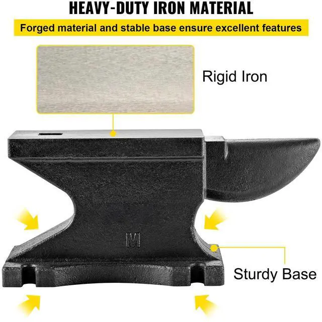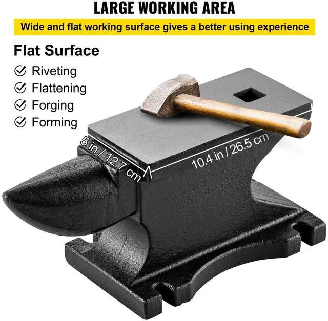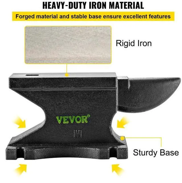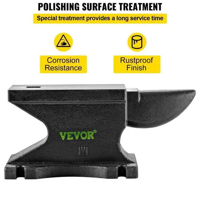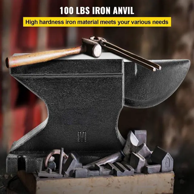 VEVOR Cast Iron Anvil, 100 Lbs(45kg) Single Horn Anvil with 10.4 x 5 in Countertop and Stable Base, High Hardness Rugged Round Horn Anvil Blacksmith, for Bending, Shaping, Twisting