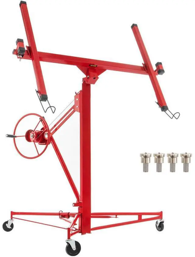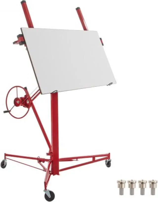 VEVOR Drywall Rolling Lifter Panel, 16ft Sheetrock Lift Drywall Lift, 150lb Weight Capacity Panel Hoist Jack Tool, Steel Material w/Telescopic Arm & 3 Lockable Wheels, 48x192 in Plasterboard Size