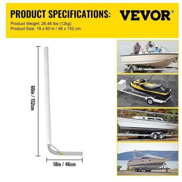 VEVOR Boat Trailer Guide-on, 60", 2PCS Steel Trailer Post Guide ons, w/White PVC Tube Covers, Complete Mounting Accessories Included, for Ski Boat, Fishing Boat or Sailboat Trailer