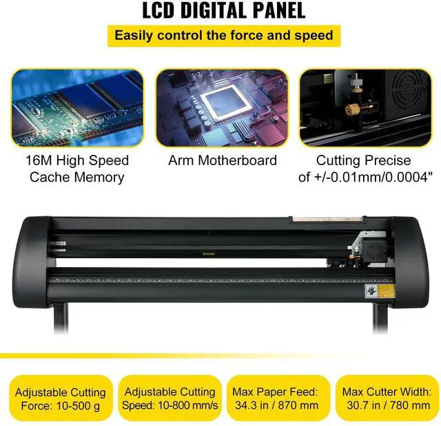 VEVOR Vinyl Cutter Machine 34 Inch Paper FeedCutting Plotter Bundle Adjustable Force & Speed Vinyl Printer, LCD Display Windows Compatible Sign Making kit with Signmaster Software, Supplies, 3 Blades