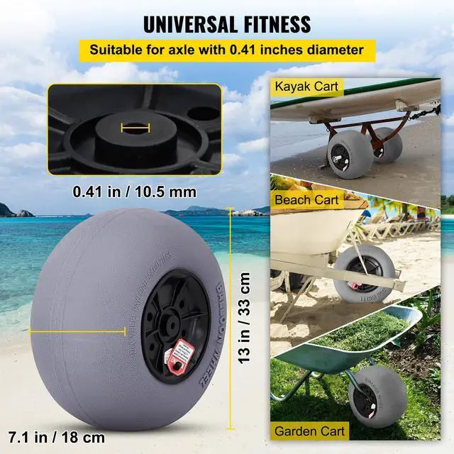 VEVOR Beach Balloon Wheels, 13" Replacement Sand Tires with 32" Stainless Steel Axle, TPU Cart Tires for Kayak Dolly, Canoe Cart and Buggy w/Free Air Pump, 2-Pack