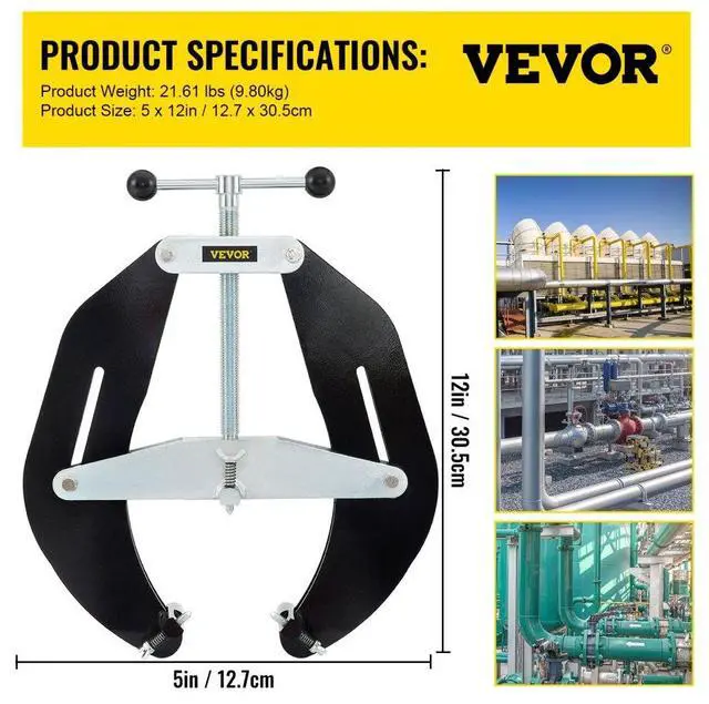 • VEVOR Pipe Clamp, 5 to 12 in, High Strength Ultra Clamp with Quick Acting Screws, Steel Pipe Alignment Tool with Lightweight Design, Black