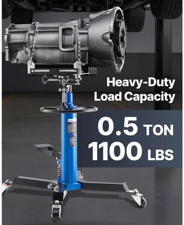 VEVOR Transmission Jack,1/2Ton/1100lbs Capacity Hydraulic Telescopic Transmission Jack, 2-Stage Floor Jack Stand with Foot Pedal, 360 Swivel Wheel, Garage/Shop Lift Hoist, Blue