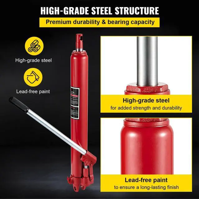 VEVOR Hydraulic Long Ram Jack, 8 Tons/17363 lbs Capacity, with Single Piston Pump and Clevis Base, Manual Cherry Picker w/Handle, for Garage/Shop Cranes, Engine Lift Hoist, Red