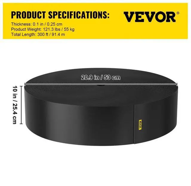 VEVOR Landscape Edging, 10 inch Depth 300 ft Total Length, Recycled HDPE Coiled Terrace Board, Flexible Bender Border for Landscaping, Lawn, Garden, Yard, Against Invading Weeds, Black