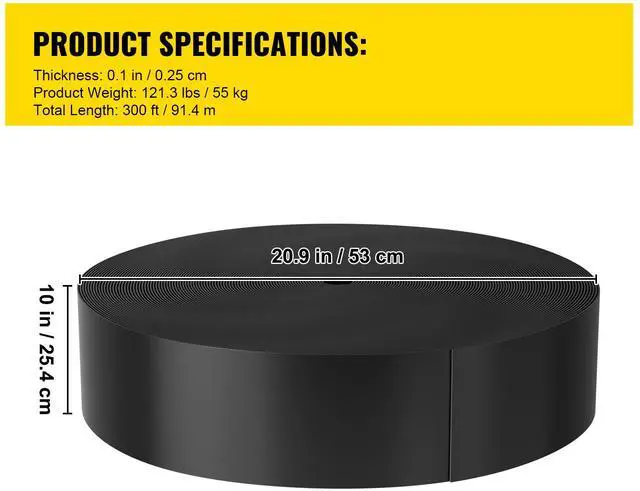 Total Length: 300 ft / 91.4 m,Thickness: 0.1 in / 0.25 cm,Model: SS-SGY-0006,Product Weight: 121.3 lbs / 55 kg,Material: HDPE,Height: 10 in / 25.4 cm