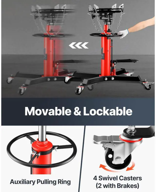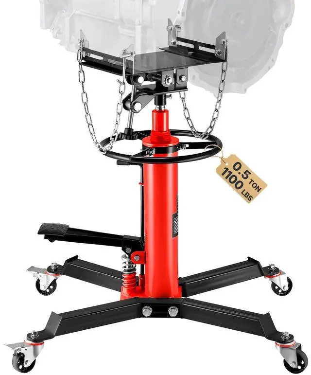 VEVOR Transmission Jack,1/2Ton/1100lbs Capacity Hydraulic Telescopic Transmission Jack, 2-Stage Floor Jack Stand with Foot Pedal, 360 Swivel Wheel, Garage/Shop Lift Hoist, Red