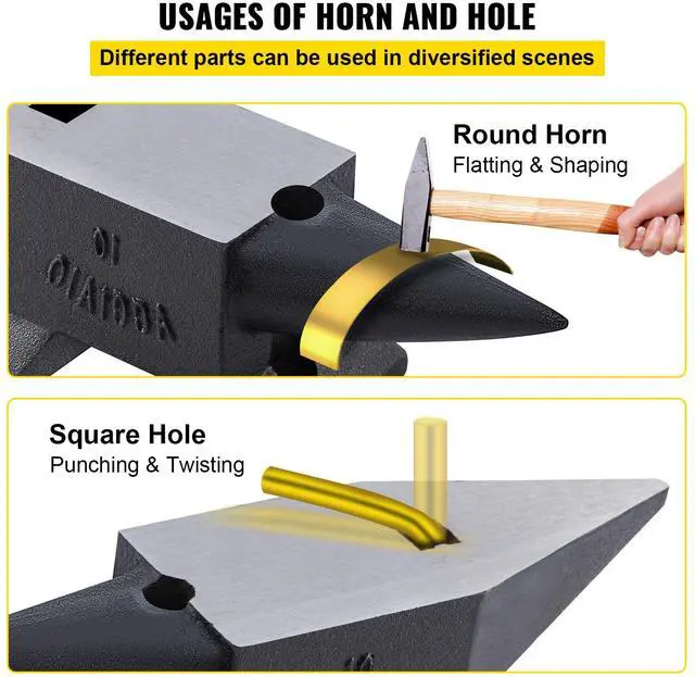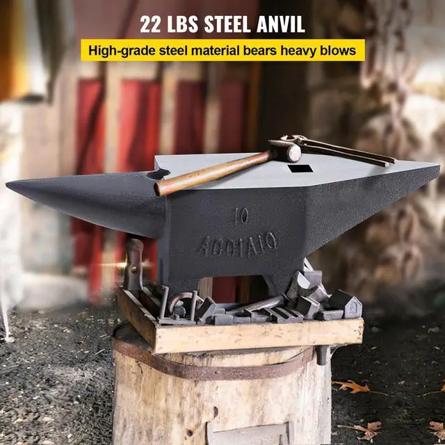 VEVOR Cast Iron Anvil, 22 Lbs(10kg) Single Horn Anvil with Large Countertop and Stable Base, High Hardness Rugged Round Horn Anvil Blacksmith, for Bending, Shaping