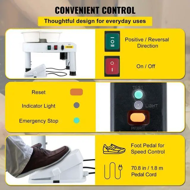 • VEVOR Pottery Wheel 11in Ceramic Wheel Machine Lift Legs Foot Pedal DIY Tool Kit