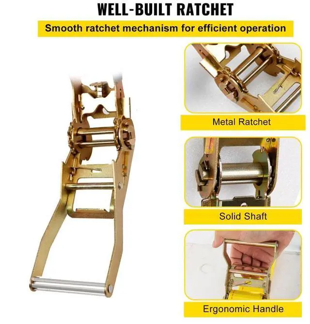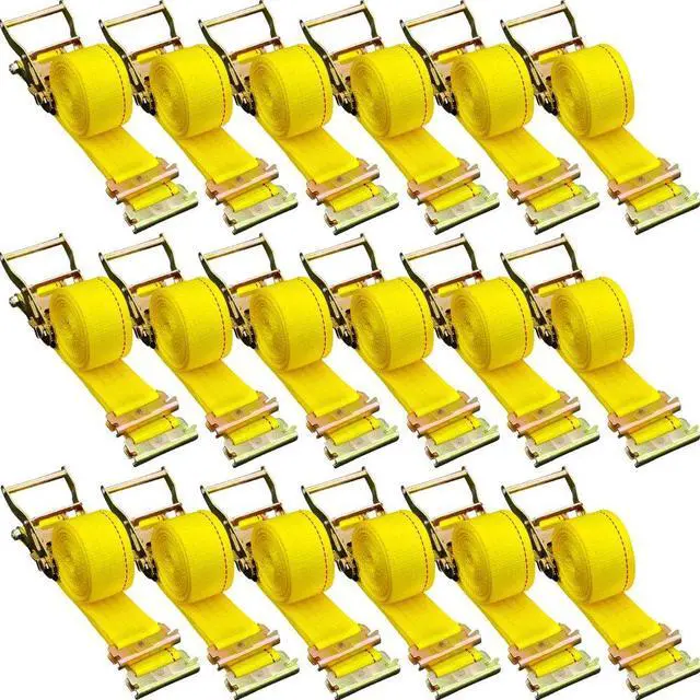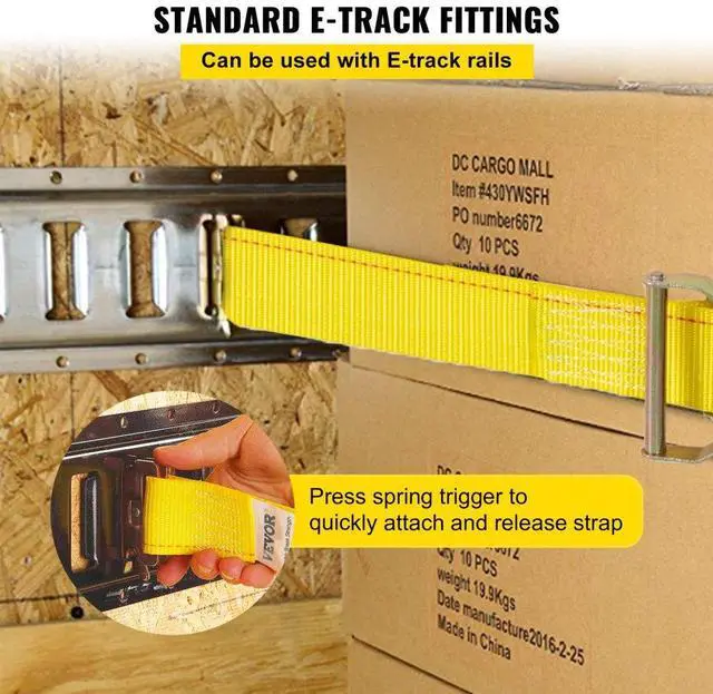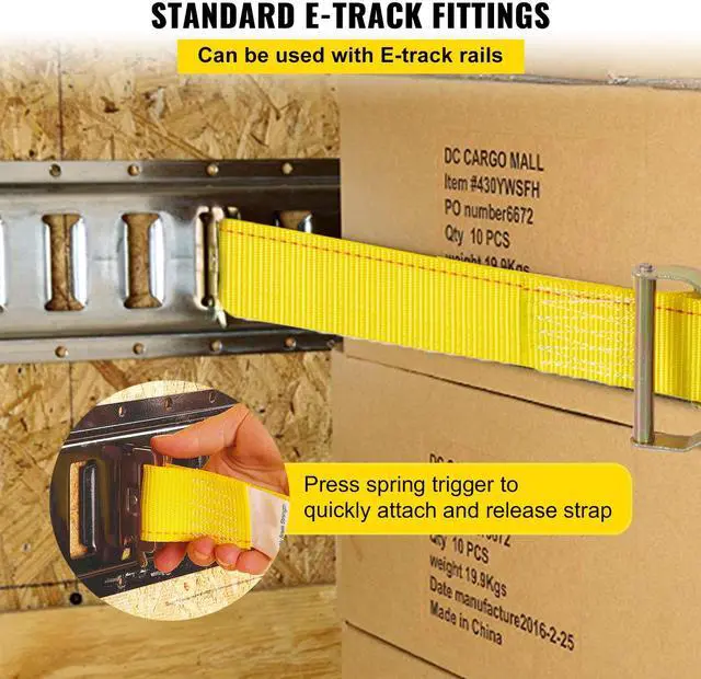 VEVOR E Track Ratchet Strap, 18PCS 2" x 15' E-Track Straps 4400 LBS Breaking Strength, with Polyester Webbing & Spring Fitting & Ratchets, Durable Tie-Downs for Motorcycles, Tire, Trailer Loads