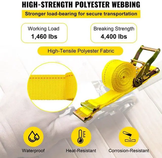 Secure Working Load: 1,460 lbs / 660 kg,Max. Breaking Strength: 4,400 lbs / 2,000 kg,Color: Yellow,Model: VV-RS-TD1815,Product Weight: 18 kg / 39.68 lbs,Material: Alloy Steel, Polyester,Strap Size: 15 ft x 2 in / 4.57 m x 5 cm