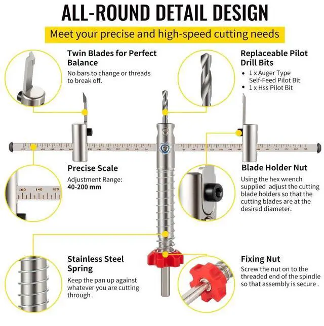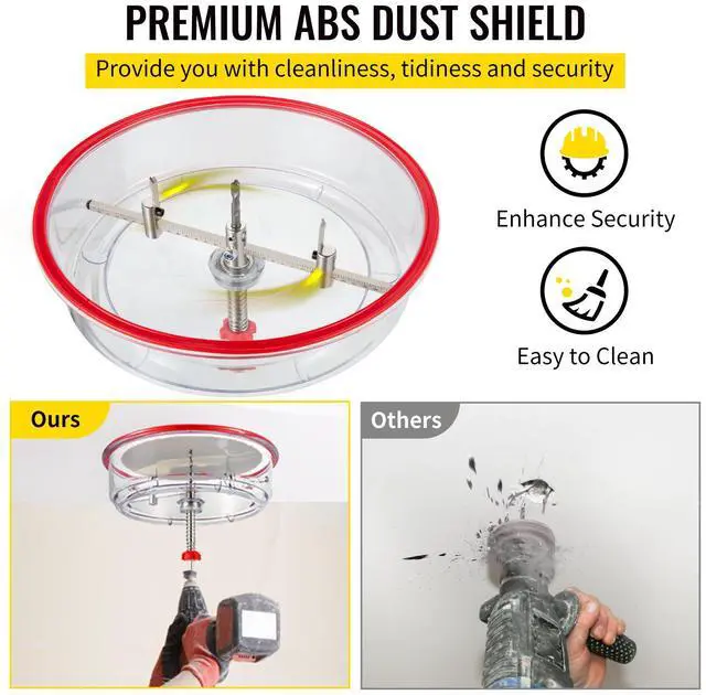 VEVOR Adjustable Hole Saw Cutter Kit, 1-5/8" to 8" (40-200 mm), Twin Blade Recessed Hole Saw with PC Dust Shield, Two Replaceable Pilot Drill Bits, for Recessed Lights, Ceiling Speakers, Vent Holes