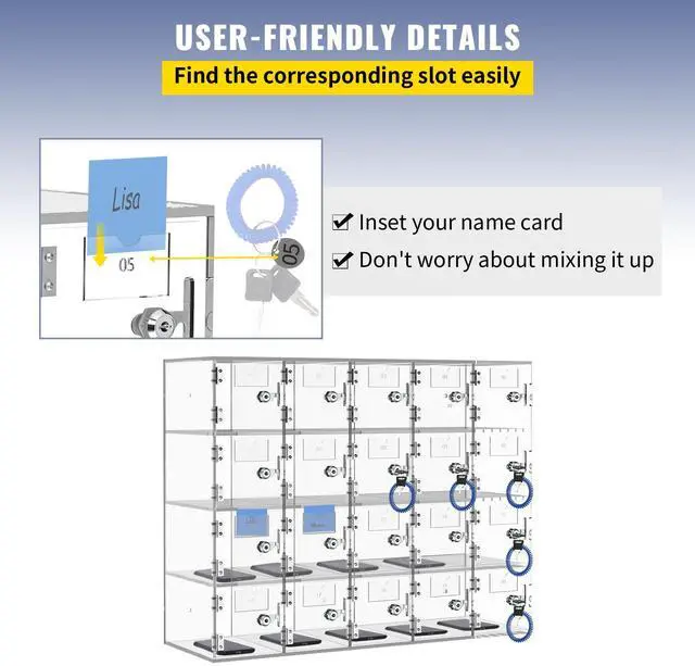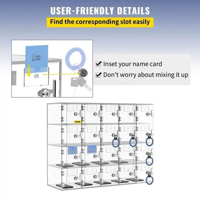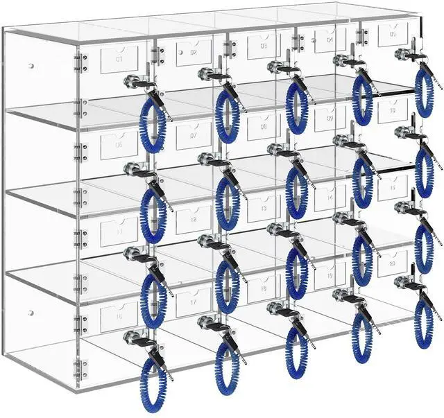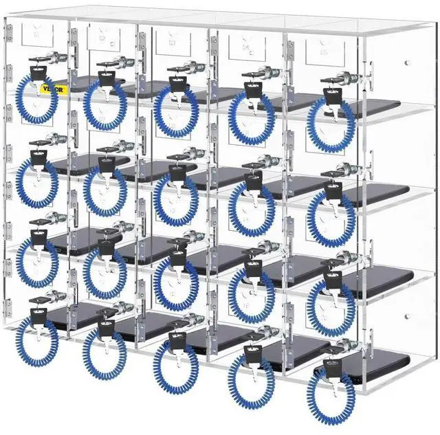 VEVOR Cell Phone Storage Locker, 20 Slots Acrylic Material with Door Locks and Keys, Wall-Mounted Cabinet Pocket Office Classroom Gym Box, Clear