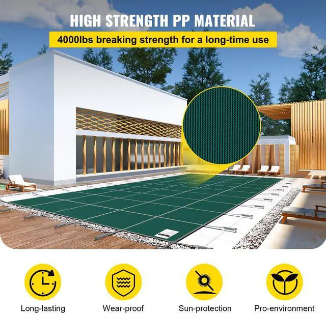 VEVOR IngroundPool Safety Cover, 16ftx 30 ftRectangular Winter Pool Cover,Triple Stitched, High Strength Mesh PP Material with Good Rain Permeability, Installation Hardware Included, Green