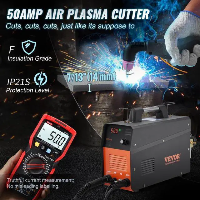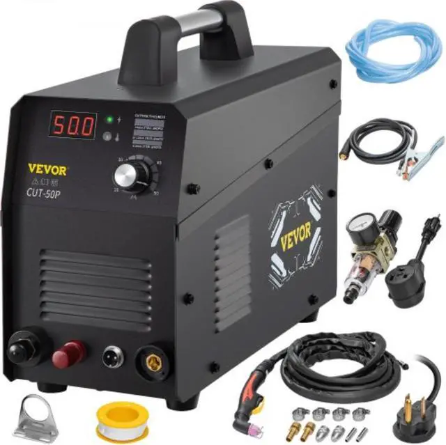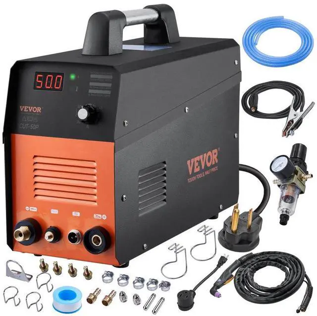 VEVOR Plasma Cutter, 50Amp, Non-Touch Pilot Arc Air Cutting Machine with Torch, 110V/220V Dual Voltage AC IGBT Inverter Metal Cutting Equipment for 1/2" Clean Cut Aluminum and Stainless Steel, Black