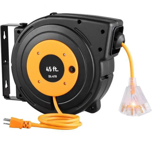 VEVOR Retractable Extension Reel, Heavy Duty 12AWG/3C SJTOW Power Cord 45 FT 12AWG, Black