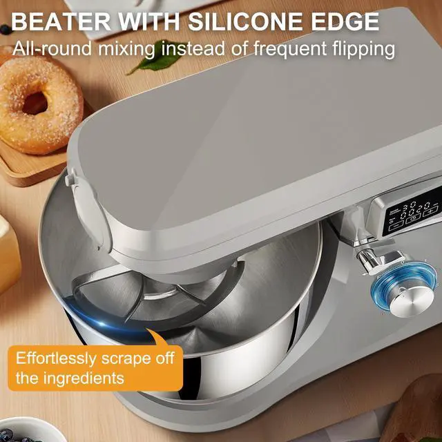 VEVOR 5 IN 1 Stand Mixer, 660W Tilt-Head Multifunctional Electric Mixer with 6 Speeds LCD Screen Timing, 7.4 Qt Stainless Bowl, Dough Hook, Flat Beater, Whisk, Scraper, Meat Grinder, Juice Cup - Gray