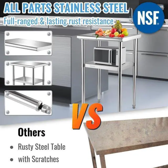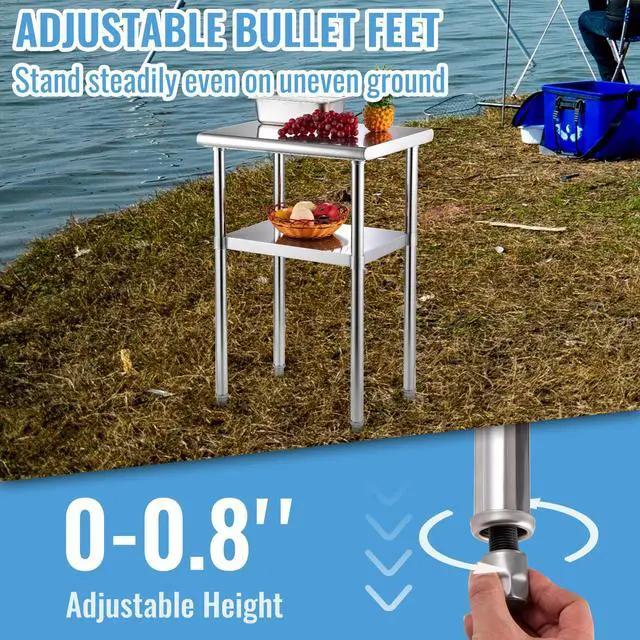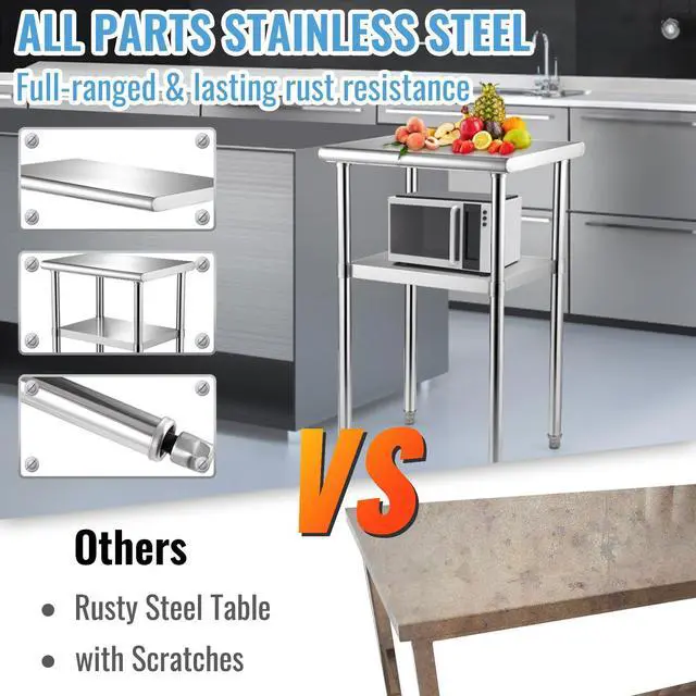 VEVOR Stainless Steel Prep Table, 24 x 18 x 36 Inch, 600lbs Load Capacity Heavy Duty Metal Worktable with Adjustable Undershelf & Feet, Commercial Workstation for Kitchen Restaurant Garage Backyard