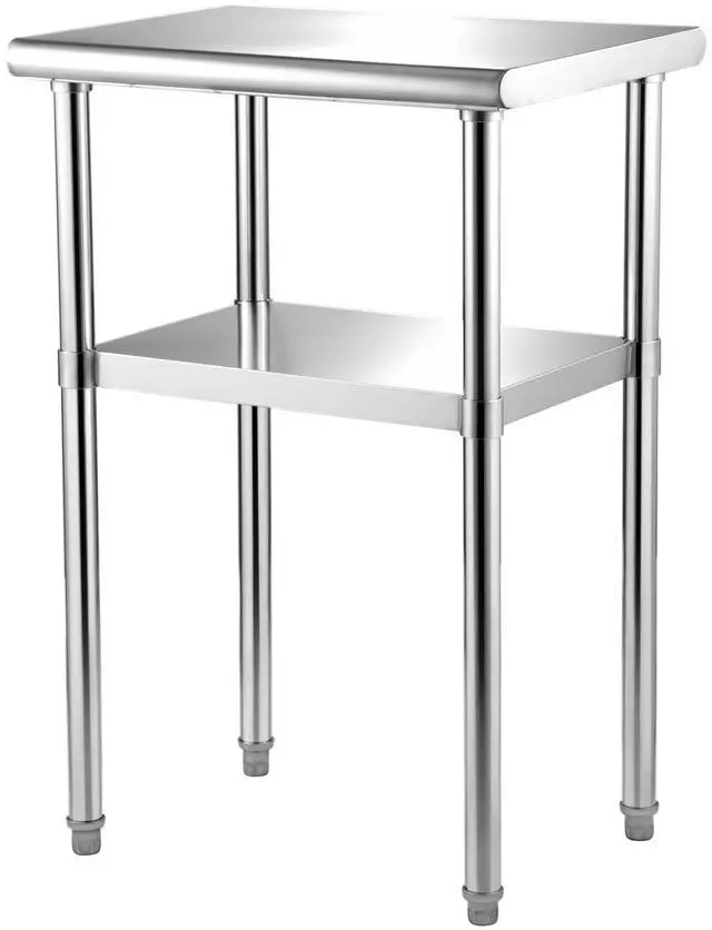 Undershelf Size: 20 x 14 x 1.6 inch (50.8 x 35.5 x 4 cm),Table Dimensions: 24 x 18 x 36 inch (61 x 45.7 x 91.4 cm),Top Shelf Size: 24 x 18 x 1.6 inch (61 x 45.7 x 4 cm),Adjustable Feet Range: 0-0.8 inch (0-2 cm),Model: VV-SSWR-24*18,Undershelf Load Capacity: 200 lbs (91 kg),Table Weight: 29.1 lbs (13.2 kg),Material: 201 Stainless Steel,Top Shelf Load Capacity: 400 lbs (181.4 kg),Distance Between Two Shelves: 0-32.1 inch (0-81.5 cm)