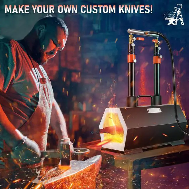 VEVOR Propane Forge Portable, Double Burner Tool and Knife Making, Large Capacity Blacksmith Farrier Forges, Mini Furnace Blacksmithing, Gas Forging Tools and Equipment, Complete Kit