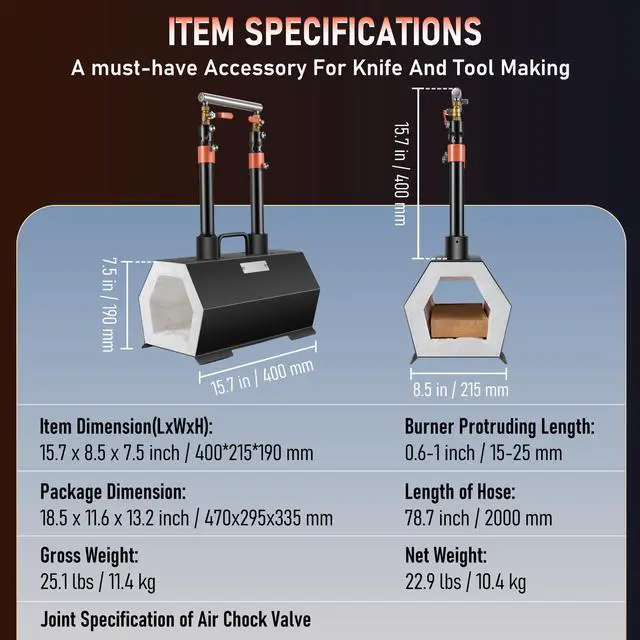 Thread Specification of Regulating Valve: 1.3125" ACME QCC1,Shape: Hexagon,Item Dimension(LxWxH): 15.7 x 8.5 x 7.5 inch /400 x 215 x 190 mm,Thick of Refractory Ceramic Fiber: 1.20.1inch /303mm,Model: JHLJS02A,Thick of Refractory Fire Brick: 1.20.1inch /302mm,Item Weight: 22.9 lbs / 10.4 kg,Standard Number of Regulating Valve: CGA 510,Type of Regulating Valve: A