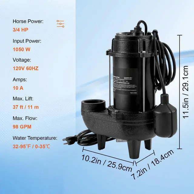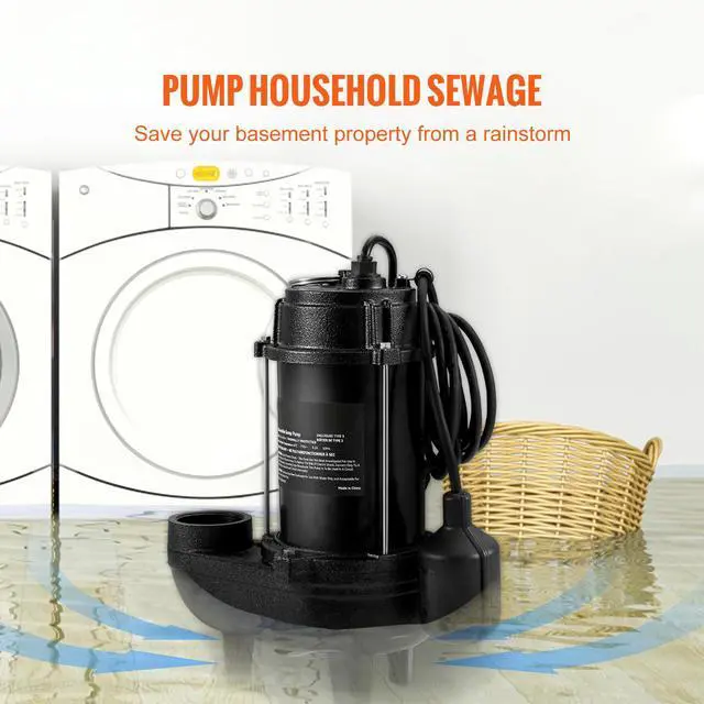 VEVOR Submersible Sewage Pump Water Pump 3/4 HP 5880GPH Cast Iron with Float