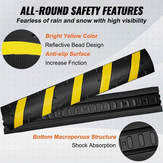 Rubber speed bumps are crafted from high-quality rubber, with less odor, excellent wear resistance, and high impact resistance, which is not easy to damage.