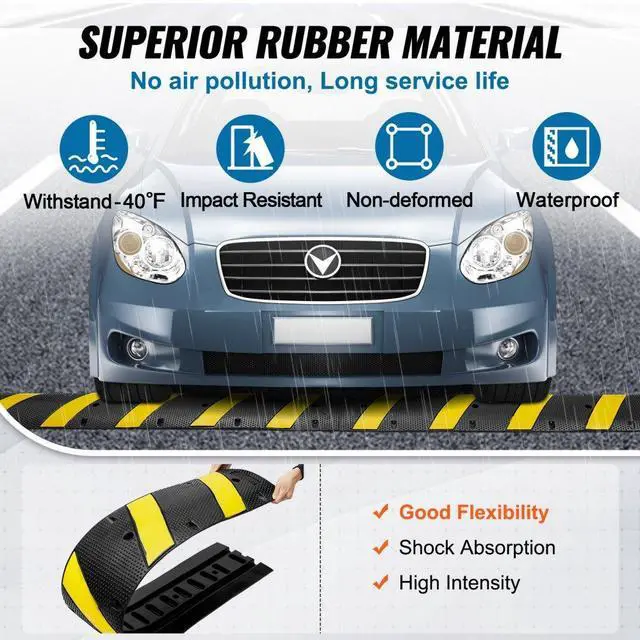 Rubber speed bumps are crafted from high-quality rubber, with less odor, excellent wear resistance, and high impact resistance, which is not easy to damage.