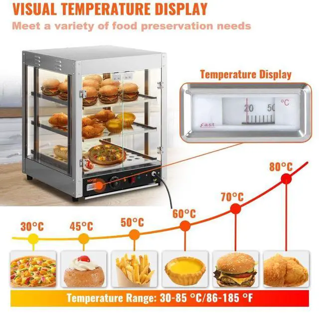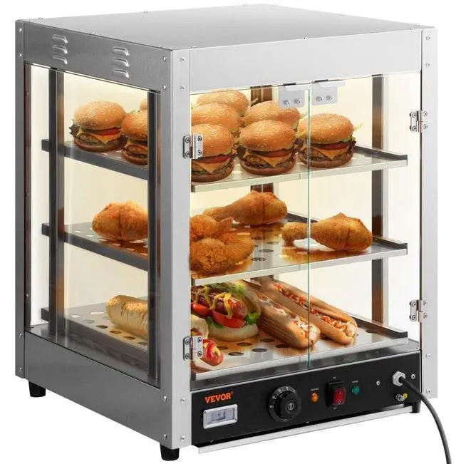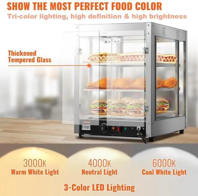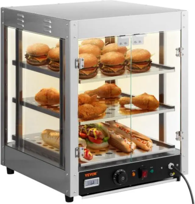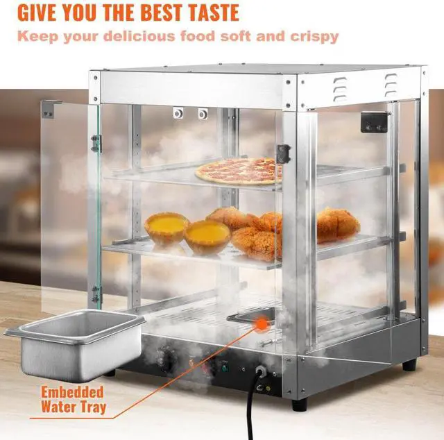 VEVOR 3-Tier Commercial Food Warmer Countertop Pizza Cabinet with Water Tray