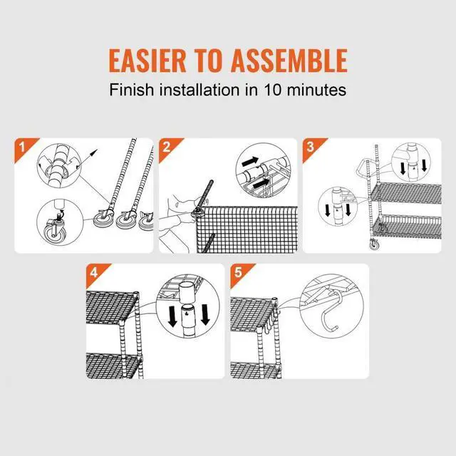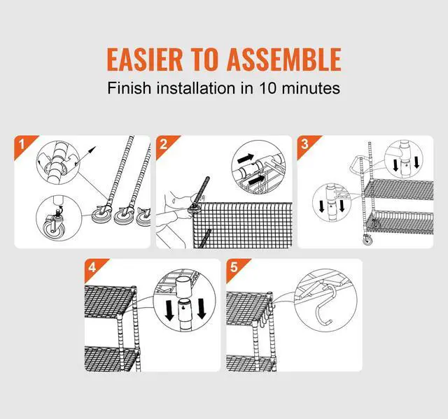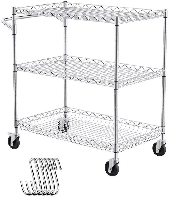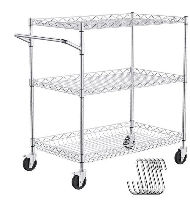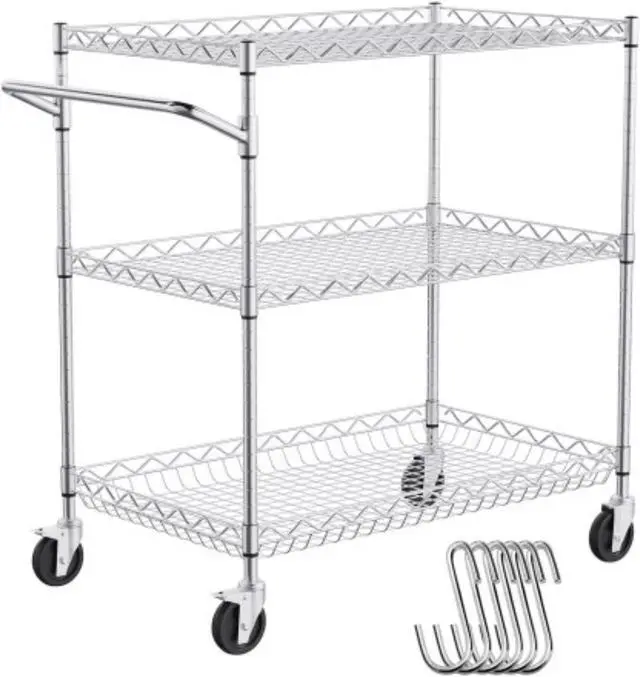 VEVOR 3-Tier Utility Cart Rolling Cart on Wheels 30"x18"x32.4" 661 LBS 6 Hooks