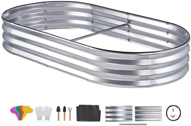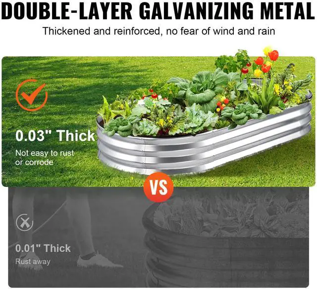 VEVOR Raised Garden Bed, 70.9x35.4x11 inch Galvanized Metal Planter Box, Outdoor Planting Boxes with Open Base, for Growing Flowers/Vegetables/Herbs in Backyard/Garden/Patio/Balcony, Silver