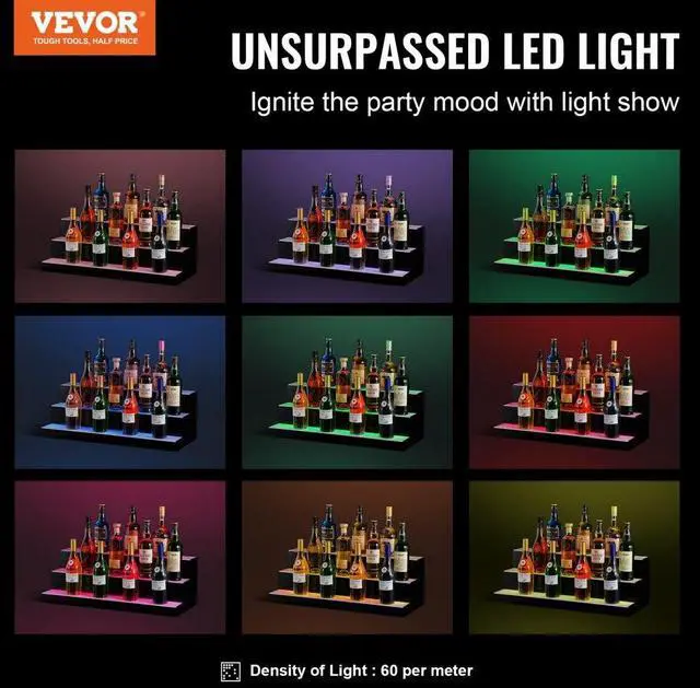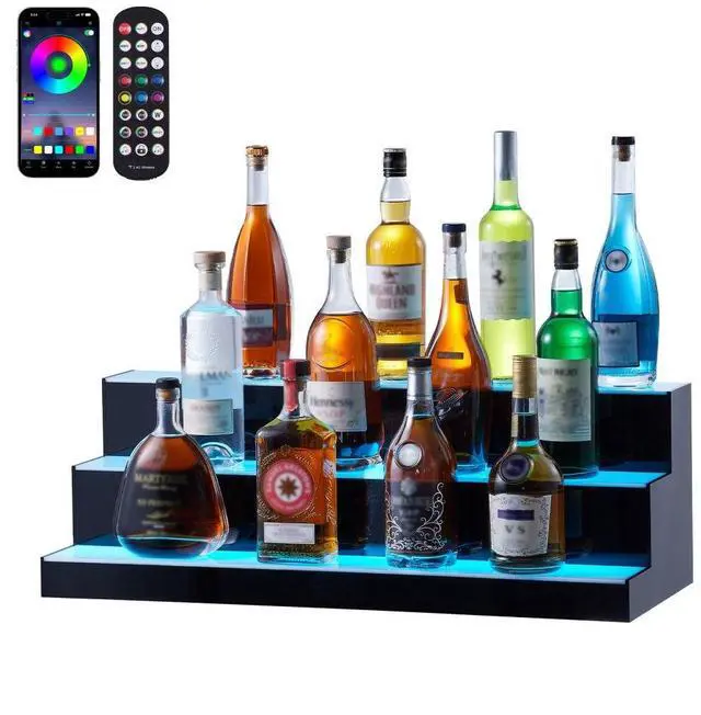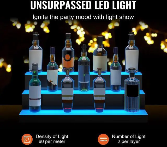VEVOR LED Lighted Liquor Bottle Display Bar Shelf RF & App Control 30" 3-Step