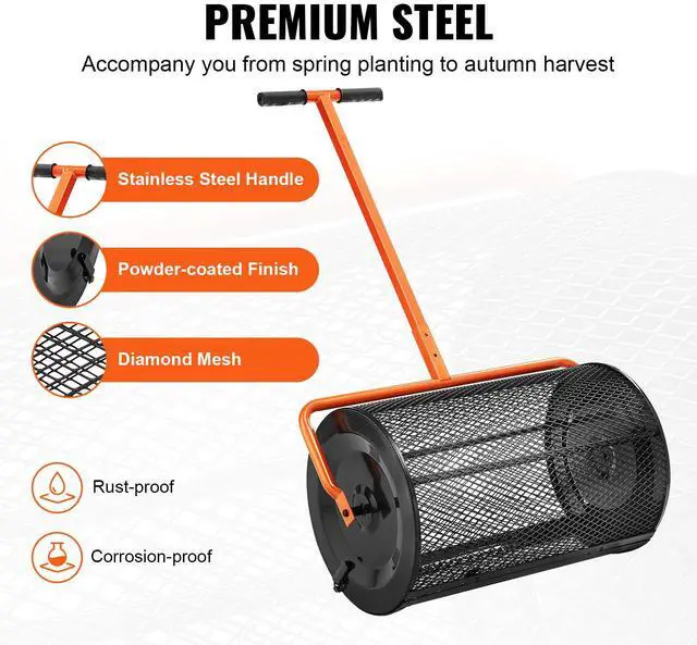 VEVOR Compost Spreader Peat Moss Spreader 24 inch Wide 24.4-26.4" Height Adjustable Lawn & Garden Spreaders Compost, Top Soil, Mulch - Durable Lightweight Multi-Purpose Yard Care Equipment