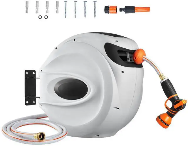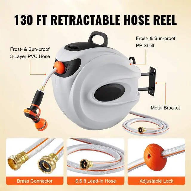 VEVOR Retractable Hose Reel Water Hose Reel 130'x1/2" 180 Swivel Wall-Mounted